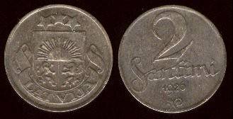 Latvija 2 santimai 1922 m., KM#2, VF