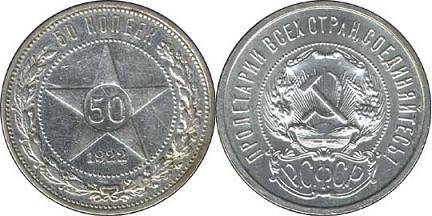 RSFSR 50 kapeikų 1922 m., KMY#83, Ag, XF+