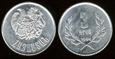 Armėnija 3 dramai 1994 m., KM#55, Unc-
