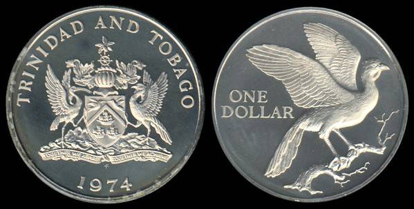 Trinidadas ir Tobagas 1 doleris 1975 m,KM#23,Proof