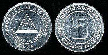 Nikaragva 5 sentavai 1974 m. FAO, KM#28, BU