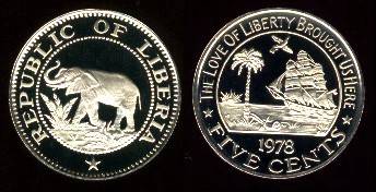 Liberija 5 centai 1977 m., KM#14, Proof