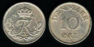 Danija 10 erių 1953 m., KM#841.2, VF