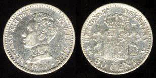 Ispanija 50 sentimų 1904 m. SM-V, KM#723, Ag, VF+