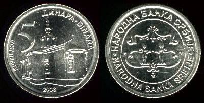 Serbija 5 dinarai 2003 m., KM#36, XF-