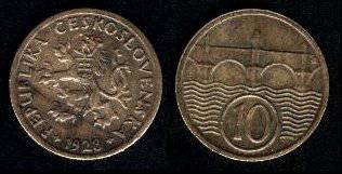 Čekoslovakija 10 helerių 1937 m., KM#3, VF+