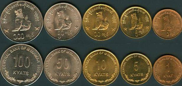 1, 5, 10, 50, 100 Kyats