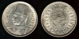Egiptas 2 piastrai 1937 m., KM#365, Ag, Unc-