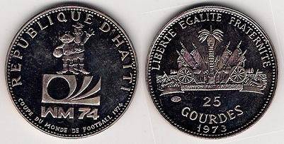 Haitis 25 gurdžiai 1973 futbolas,KM#103,Ag,Proof-