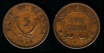 Uganda 5 centai 1966 m., KM#1, Unc-