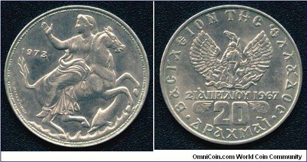 Graikija 20 drachmų 1973 m., KM#111, XF+
