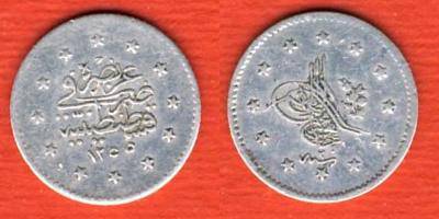 Turkija 1 kurušas 1255/20(1859) m., KM#671, Ag,VF-