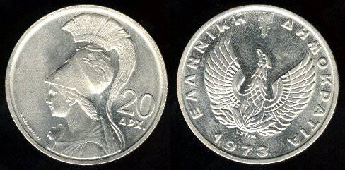Graikija 20 drachmų 1973 m., KM#112, XF