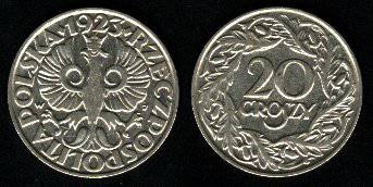 Lenkija 20 grašių 1923 m., KM Y#12, XF