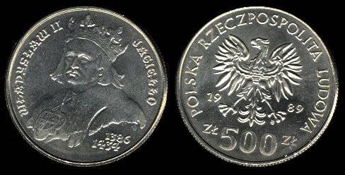 Lenkija 500 zlotų 1989 m. Jogaila, KM Y#194, Unc-