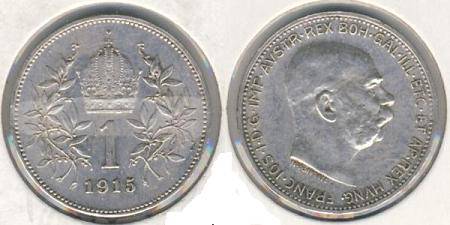 Austrija 1 krona 1915 m., KM#2820, Ag, XF