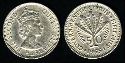 Kipras 50 milų 1955 m., KM#36, VF