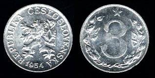 Čekoslovakija 3 heleriai 1953 m., KM#36, XF-
