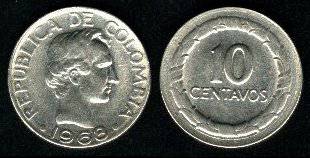 Kolumbija 10 sentavų 1968 m., KM#226, Unc