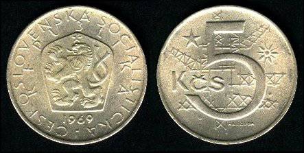 Čekoslovakija 5 kronos 1968 m., KM#60, XF-