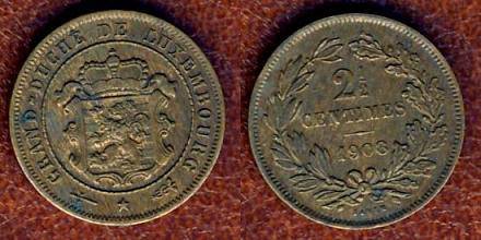 Liuksemburgas 2½ santimo 1901 m., KM#21, VF