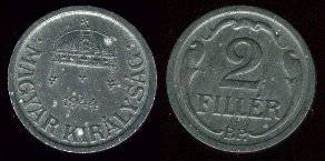 Vengrija 2 fileriai 1944 m., KM#519, XF