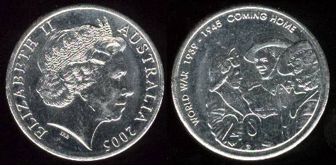Australija 20 centų 2005 m.Coming Home,KM#745,XF+