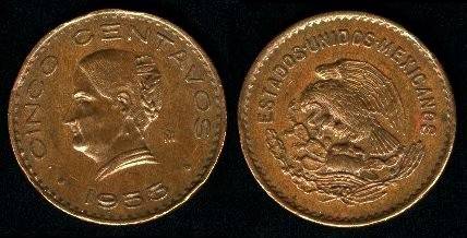 Meksika 5 sentavai 1952 m., KM#424, VF-
