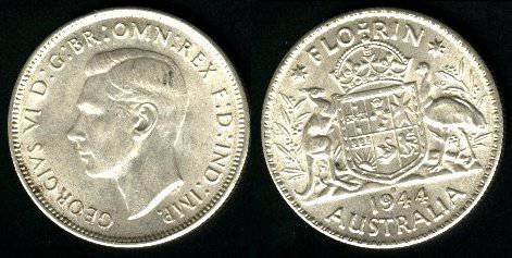 Australija florinas 1944 m. S, KM#40, Ag, VF