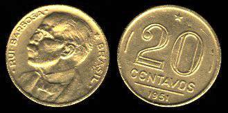 Brazilija 20 sentavų 1949 m., KM#562, VF-