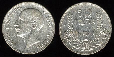 Bulgarija 50 levų 1934 m., KM#44, Ag, XF