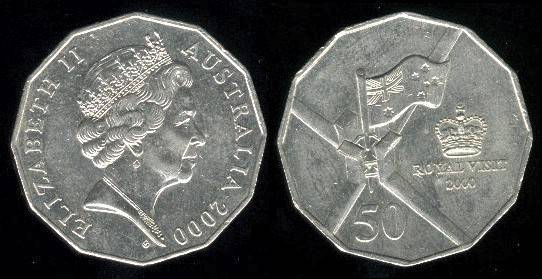 Australija 50 centų 2000 m. Royal Visit,KM#437,VF