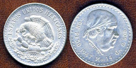 Meksika 1 pesas 1947 m., KM#456, Ag, VF+