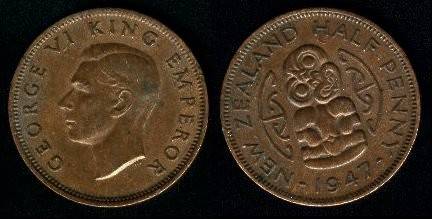 Naujoji Zelandija ½ penso 1947 m., KM#12, XF-