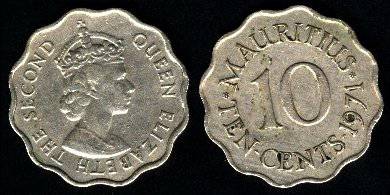 Maurikijus 10 centų 1959 m., KM#33, VF