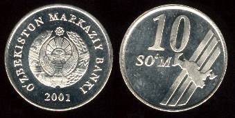 Uzbekistanas 10 somų 2001 m., KM#14, XF-