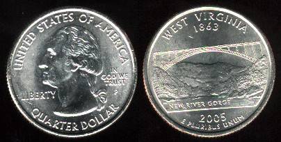 JAV kvoteris 2005 m. D, West Virginia, KM#374, Unc
