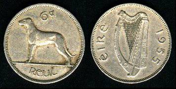 Airija 6 pensai 1942 m., KM#13a, VF