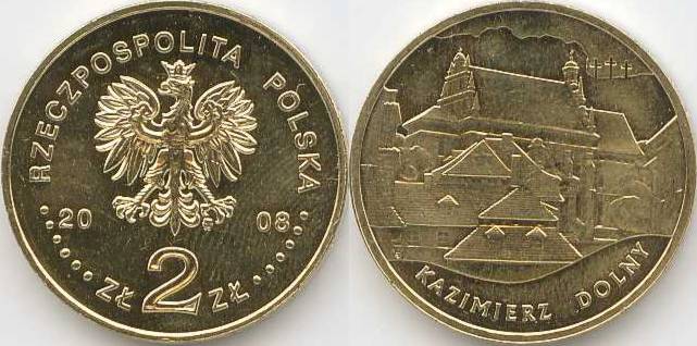 Lenkija 2 zlotai 2008 KazimierzDolny,KM#Y641,Unc