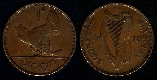 Airija 1 pensas 1928 m., KM#3, XF
