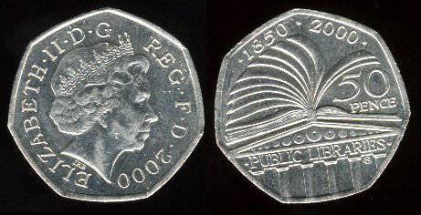 Didžioji Britanija 50 pensų 2000 m., KM#1004, XF+