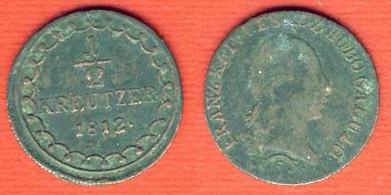 Austrija ½ kreicerio 1812 m. S, KM#2109, F+