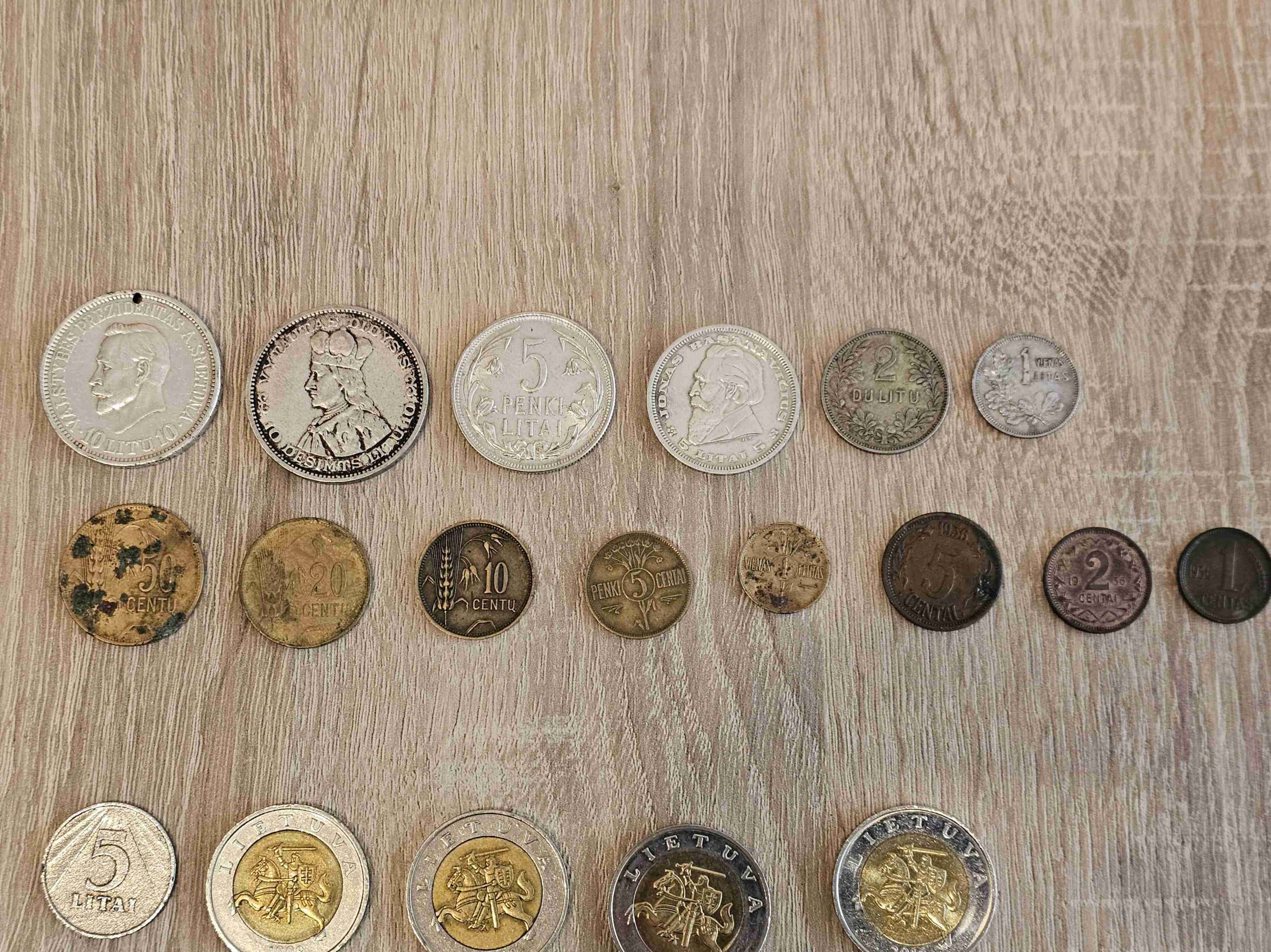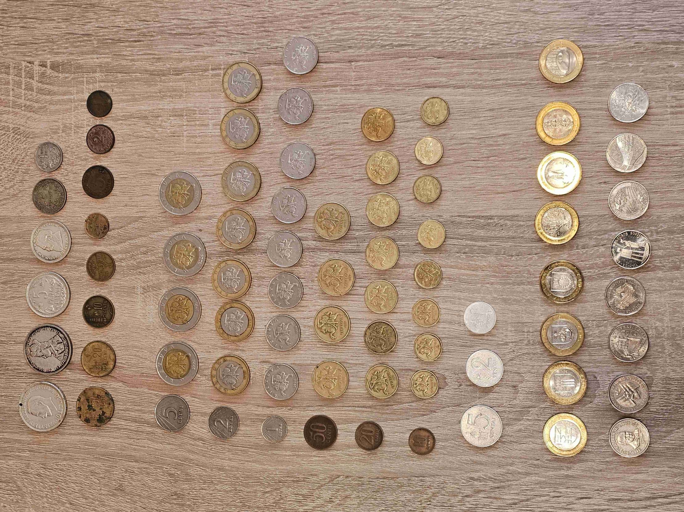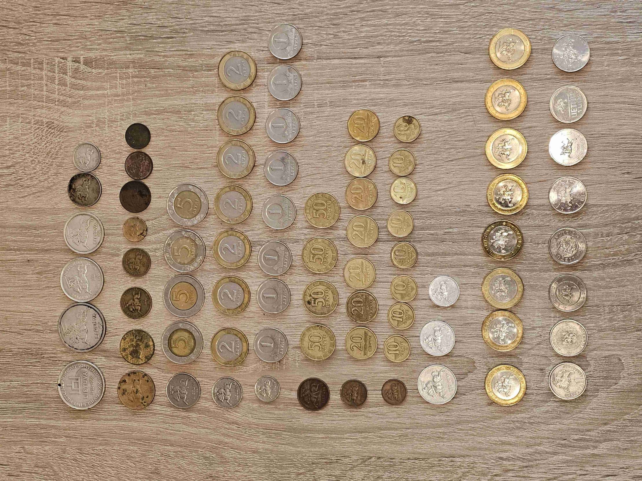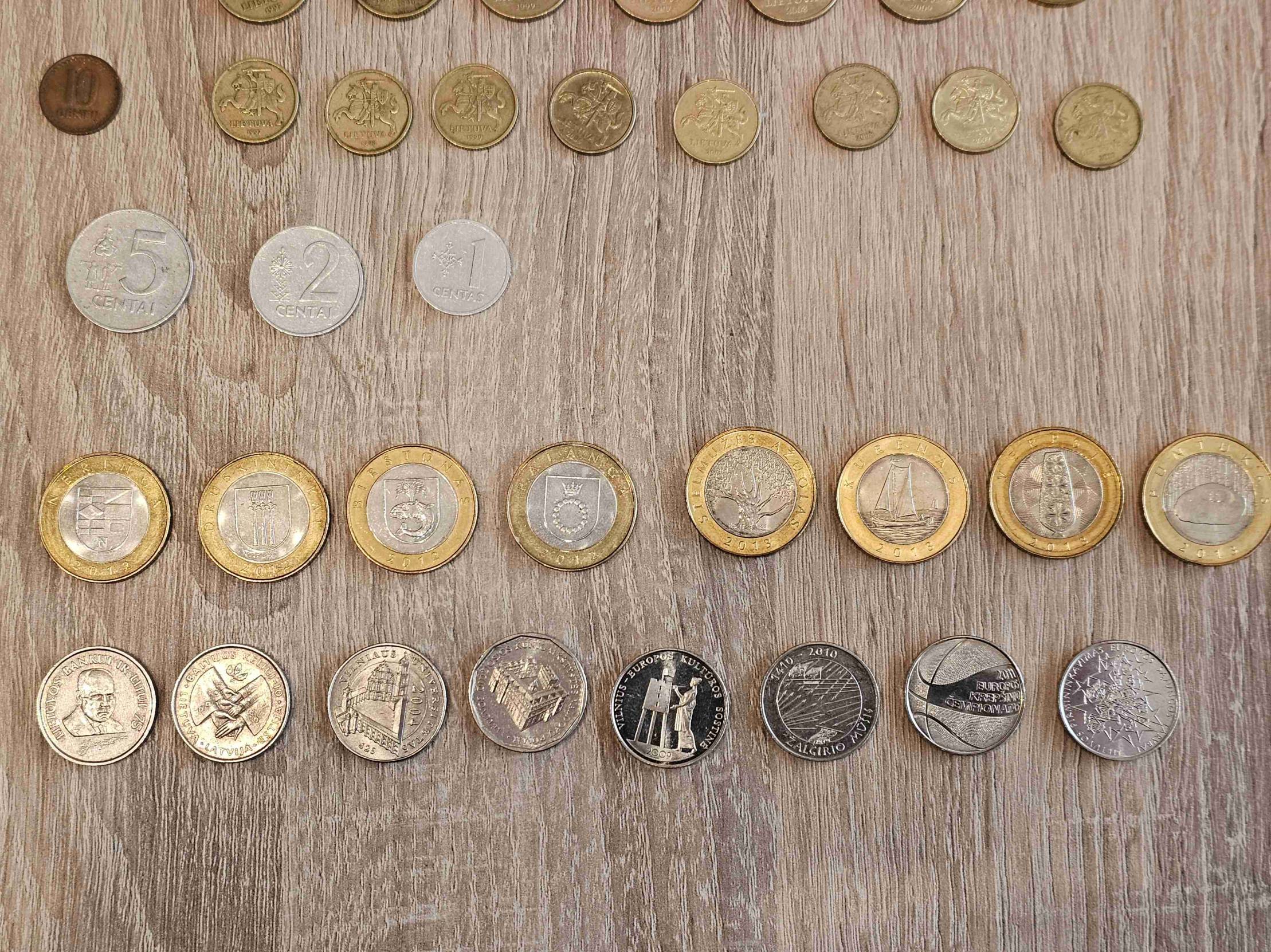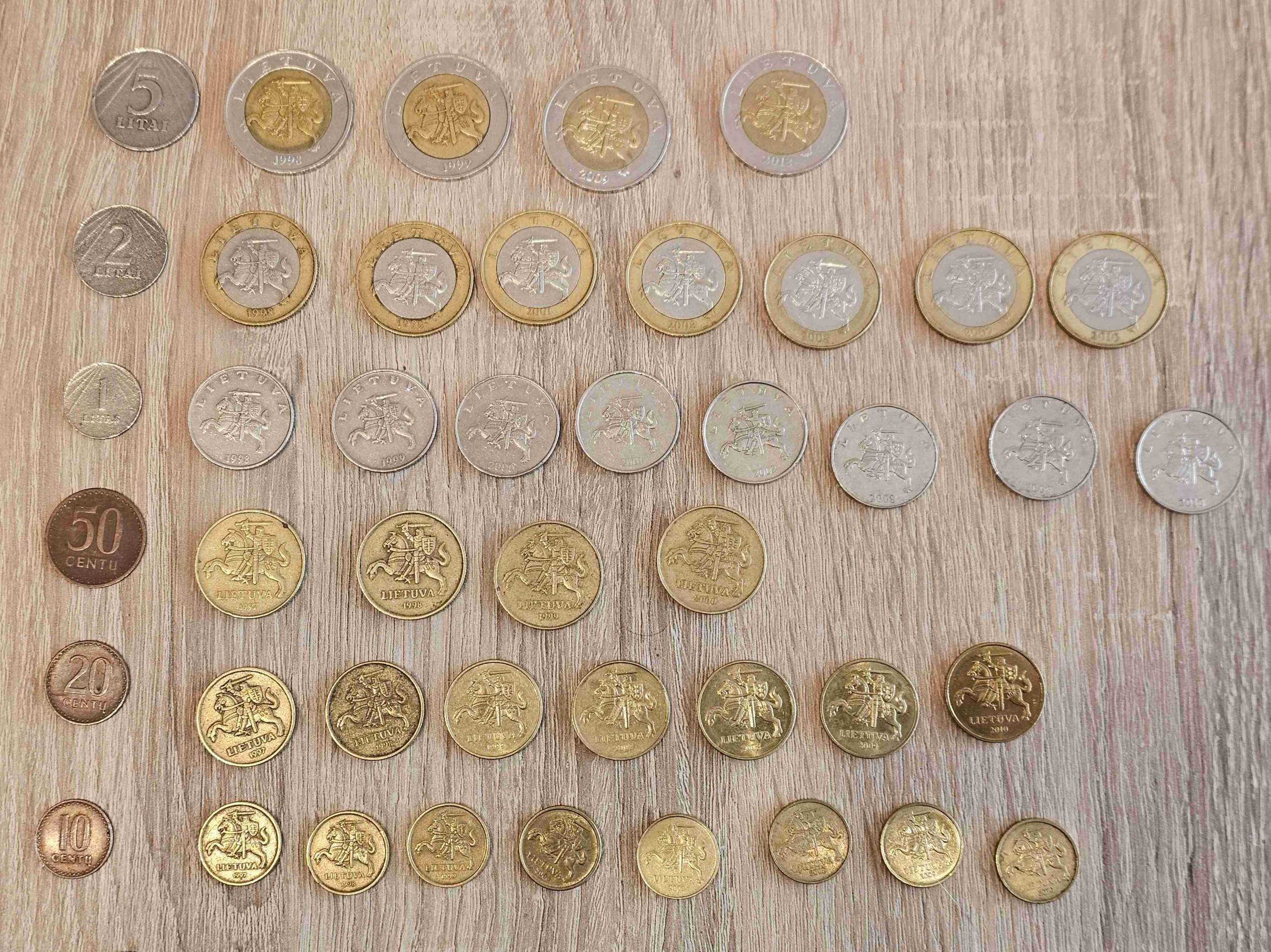 Pilnas apyvartinių litų rinkinys. Viso 77 monetos. Nevalytos, tokios, kokios atkeliavo iki manęs.