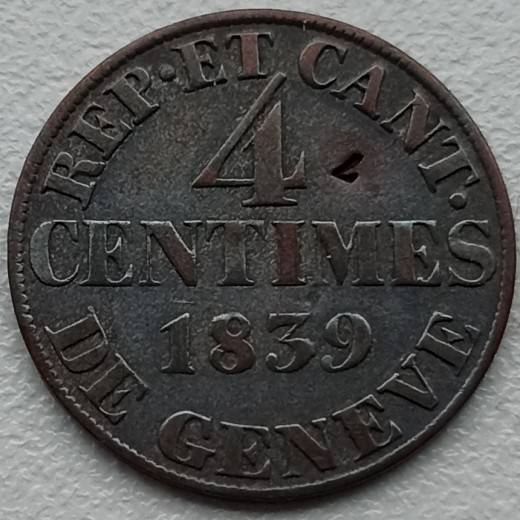 Šveicarija. Ženeva. 4 centimai 1839