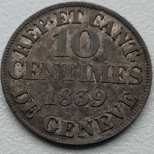 Šveicarija. Ženeva. 10 centimų 1839 sidabras
