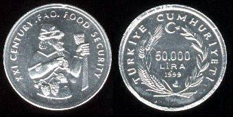 Turkija 50.000 lirų 1999 m. FAO, KM#1103, BU
