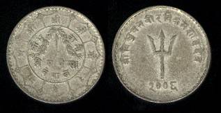 Nepalas 20 paisų 1952 m., KM#716, Ag, XF-
