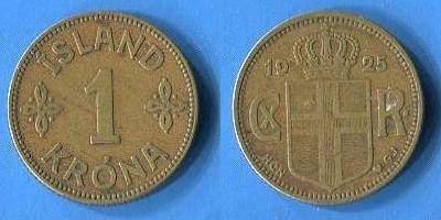 Islandija 1 krona 1925 m., KM#3.1, VF
