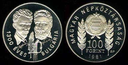 Vengrija 100 forintų 1981 Bulgaria PROO,KM#622,Unc