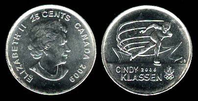 Kanada 25 centai 2009 Olym.Cindy Klassen,KM#new,BU